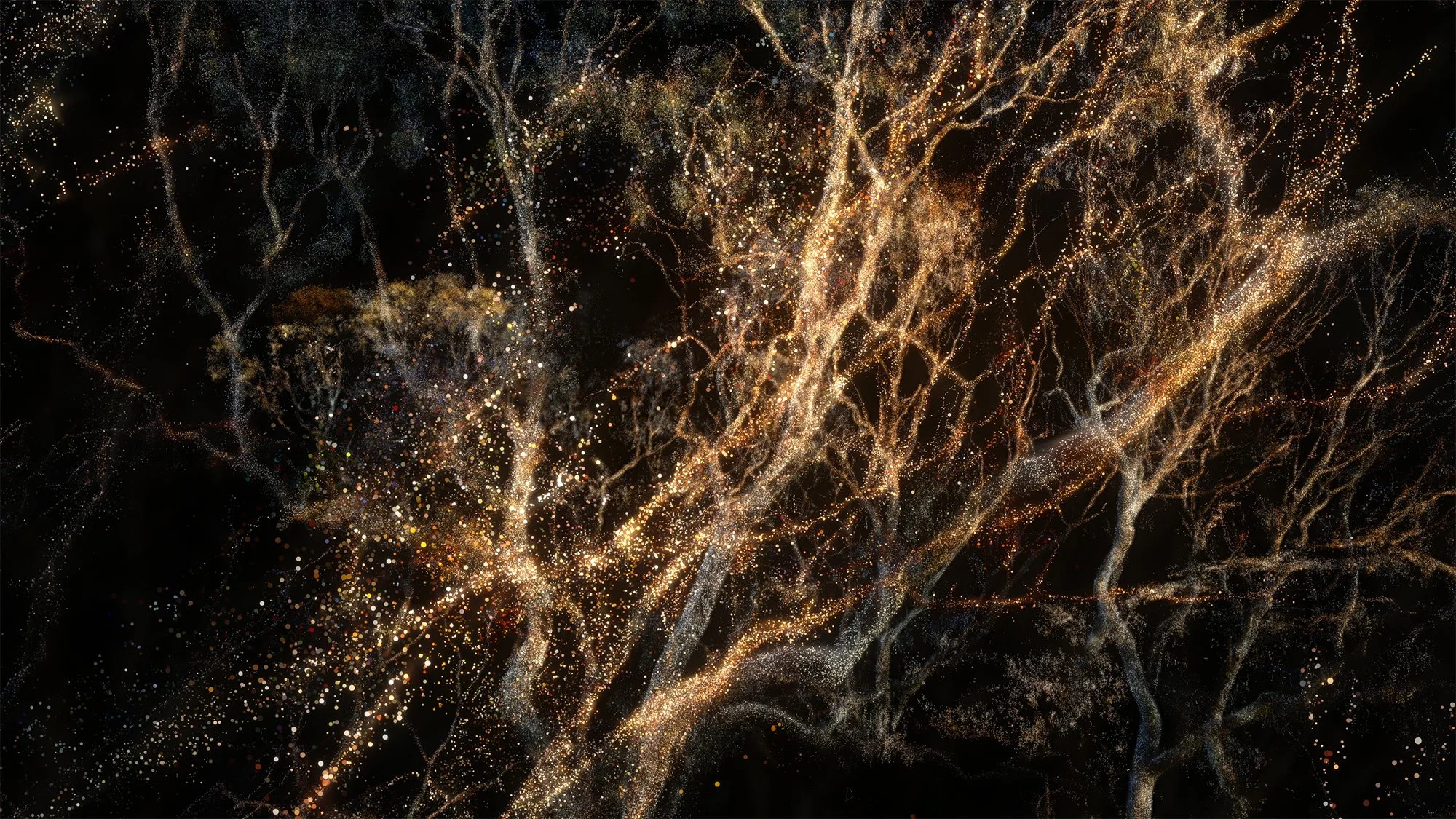 The work arose from many hours spent observing, taking field recordings, and photographing the flying foxes of the Yarra Bend. The music explores an eco-acoustic sound palette, incorporating electronics, field recordings and choral textures; a church organ breathes alongside the vocalisations of bats, filling the air with resonance and reverie. Forest Cathedral combines 3D point cloud technology with radiance field imaging, layering shifting visual fragments with a dynamic soundscape.